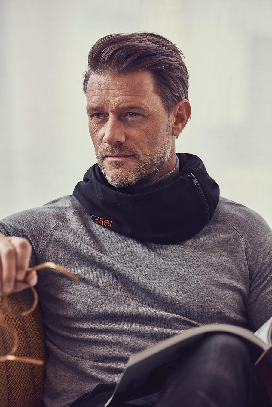 By loosening the bracket and letting the air out of the neck pillow, you can wear it as a warm, comfortable scarf. The hood can also be tucked inside the pillow for extra padding.